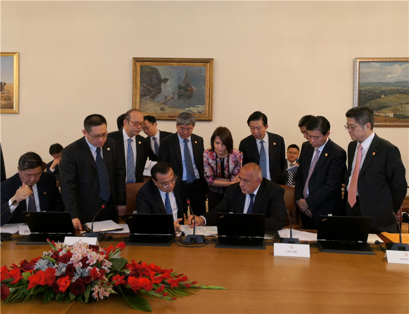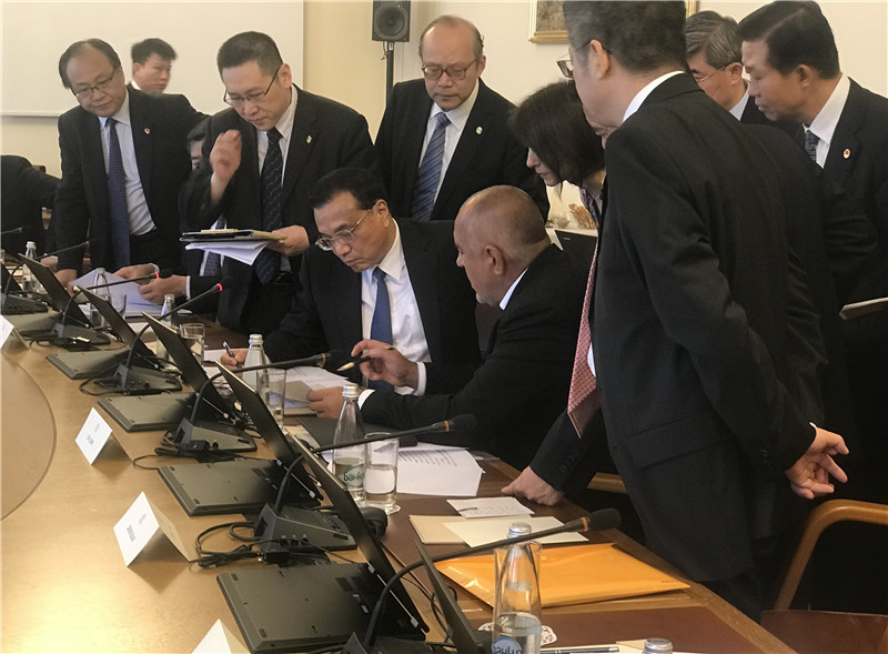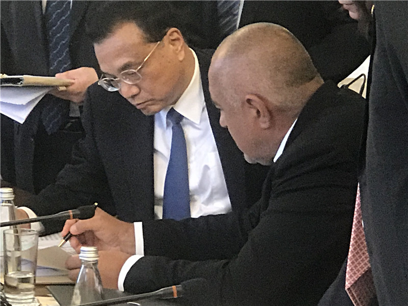 这是外事会谈场面中极其罕见的一幕,据悉李克强总理也是首次经历:会谈刚刚开始5分钟,保加利亚总理鲍里索夫手拿一幅地图起身,直接走向坐在对面的李克强总理,并在中国总理的身旁坐了下来。