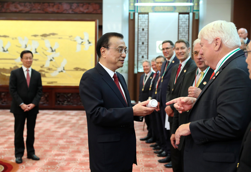 当天下午,李克强总理在人民大会堂亲切会见荣获2018年度中国政府友谊奖的外国专家及其亲属。中国政府友谊奖是为表彰在中国现代化建设中作出突出贡献的外国专家而设立的最高荣誉奖项,本年度共有来自21个国家的50名外国专家获奖。