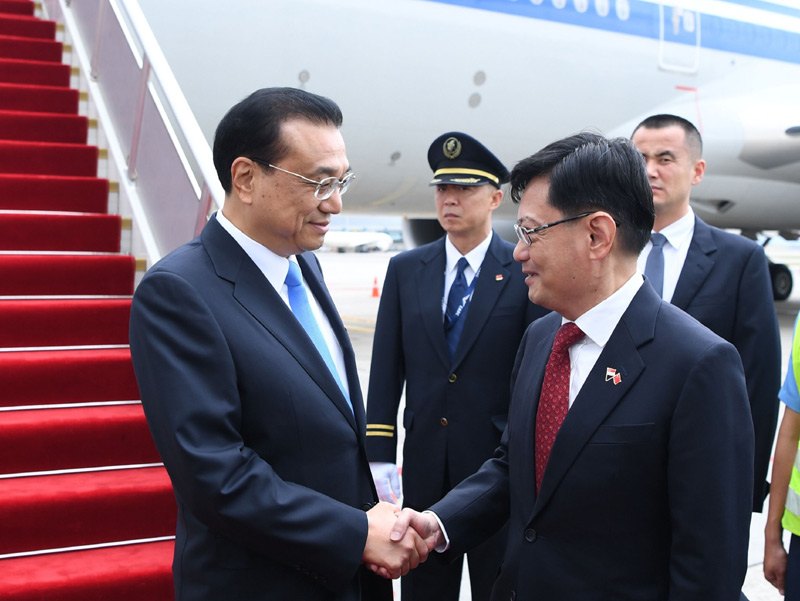 当地时间11月12日下午,李克强总理乘专机抵达新加坡樟宜国际机场,开始对新加坡进行正式访问,并出席第21次中国-东盟(10+1)领导人会议、第21次东盟与中日韩(10+3)领导人会议和第13届东亚峰会。访问新加坡期间,李克强将同李显龙总理举行会谈并共同见证双方合作文件签署,会见哈莉玛总统,在“新加坡讲坛”和“通商中国”发表演讲,同新加坡工商界及各界人士广泛交流,考察新加坡科技公司。出席会议期间,李克强将同东盟国家领导人出席第二次《区域全面经济伙伴关系协定》领导人会议,并同与会部分国家领导人举行双边会见。国务委员兼国务院秘书长肖捷等陪同人员同机抵达。