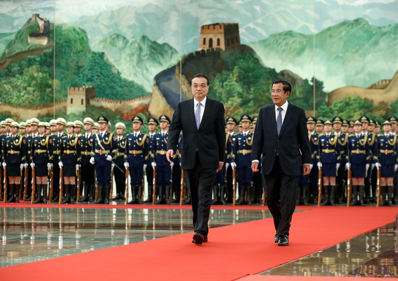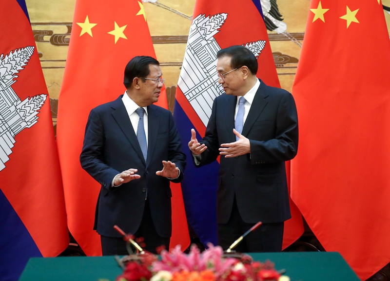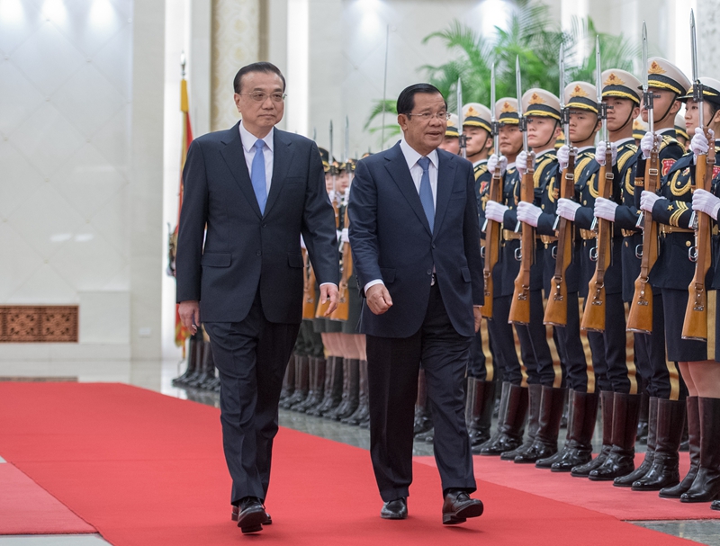 李克强指出,中国将一如既往坚定支持柬埔寨走符合本国国情的发展道路,愿将“一带一路”倡议同柬方发展战略更好对接。我们支持中方企业参与柬产能、交通、电力等基础设施建设和运营,希望柬方提供必要便利条件。双方要共同建设好西哈努克港经济特区等重点合作项目,办好2019年“中柬文化旅游年”,加强在中国—东盟合作、澜沧江—湄公河合作等框架下的沟通协调。中方愿继续为柬埔寨加快发展、改善民生提供力所能及的帮助。