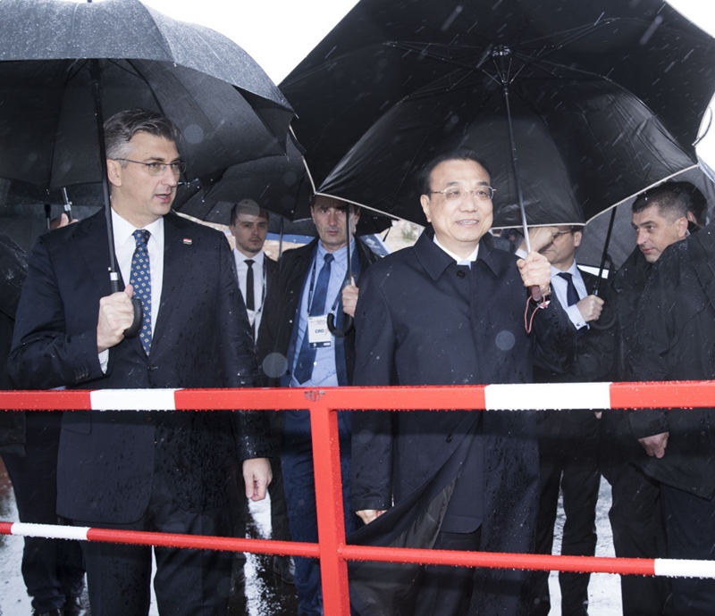 当地时间4月11日上午,国务院总理李克强在克罗地亚总理普连科维奇陪同下,来到克罗地亚南部的佩列沙茨半岛,考察中国企业中标承建的佩列沙茨大桥项目。