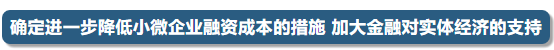 1、坚持不搞“大水漫灌”,实施好稳健的货币政策,灵活运用货币政策工具,扩大再贷款、再贴现等工具规模,抓紧建立对中小银行实行较低存款准备金率的政策框架,针对融资难融资贵主要集中在民营和小微企业的问题,要将释放的增量资金用于民营和小微企业贷款。推广债券融资支持工具,确保今年民营企业发债融资规模、金融机构发行小微企业专项金融债券规模均超过2018年水平。