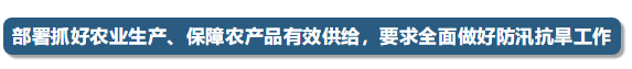 会议指出,抓好农业生产、保证农产品充裕供给,是稳物价、稳预期、保民生的重要基础,对应对当前复杂形势、促进扩大消费、保持经济平稳运行具有重要意义。