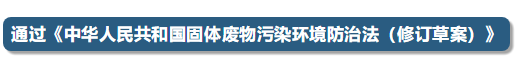 会议通过《中华人民共和国固体废物污染环境防治法(修订草案)》。
