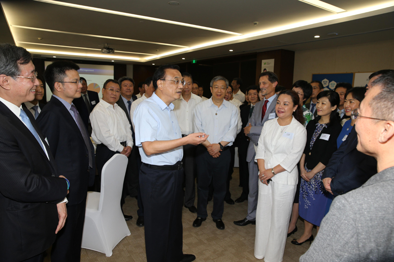 上海电气是年营业收入超过千亿元的综合性装备制造企业。李克强来到这里了解当前经济形势对市场主体的影响,对企业研发生产的重大装备走在国际国内前列表示赞许。他勉励企业瞄准世界一流、更加积极地到国际市场竞争,争创奇迹,展现更强雄风,为提升我国重大装备制造水平、助力经济发展和民生改善多作贡献。李克强来到张江人工智能岛,察看3D视觉远程医疗、智能神经仿生、智能无人系列技术等创新成果。他说,人工智能就是要把人的智慧汇聚起来,更好地为人服务。要注重基础研究,发展热门产业也需要有甘坐冷板凳的人。要加强协同合作,把成果广泛应用到制造业、服务业等领域,培育壮大新动能,造福人民。
