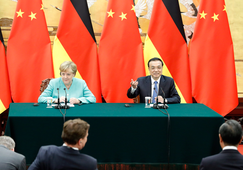 李克强表示,中德应把握世界大势,维护多边主义和以世界贸易组织为核心的自由贸易体制。双方要秉持开放包容理念,扩大双向市场开放。中国主动扩大市场开放的方向不会改变,欢迎外资的政策也不会改变,也将进一步加大知识产权保护。希望德方同样保持市场开放,放宽民用技术出口限制,在投资审查、市场准入等方面给予中国企业公平、公正待遇。我们愿同德方深化在自动驾驶、技术创新、人工智能等领域的合作。我们希望德方支持进一步扩大中德航权安排,愿同德方加强青年交流和职业教育合作,夯实两国关系发展的民意基础。