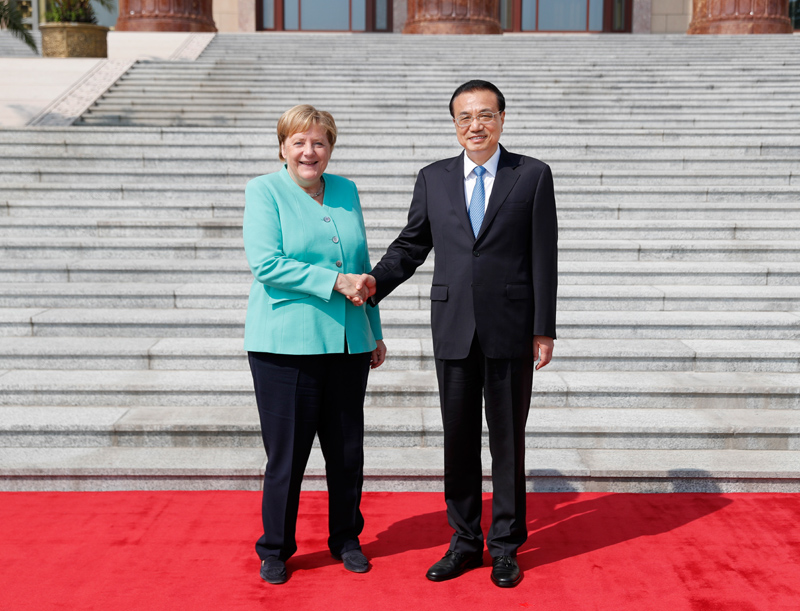 国务院总理李克强9月6日上午在人民大会堂同来华进行正式访问的德国总理默克尔举行会谈。