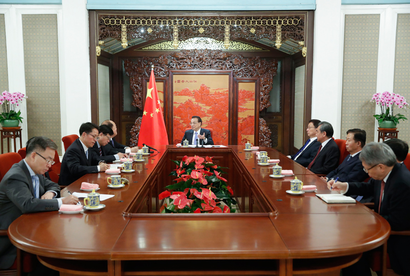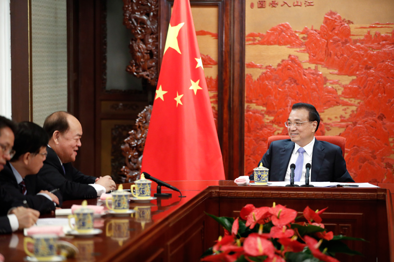 李克强会见贺一诚 颁发任命贺一诚为澳门特区第五任行政长官的国务院令