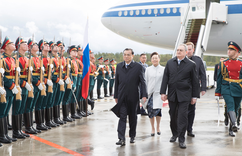 应俄罗斯联邦政府总理梅德韦杰夫邀请,国务院总理李克强当地时间9月16日下午乘专机抵达圣彼得堡普尔科沃机场,对俄罗斯进行正式访问并举行中俄总理第二十四次定期会晤。