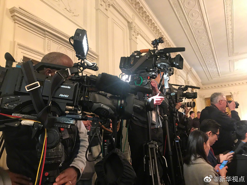 刘鹤与特朗普抵达白宫东厅,准备参加中美第一阶段经贸协议签署仪式