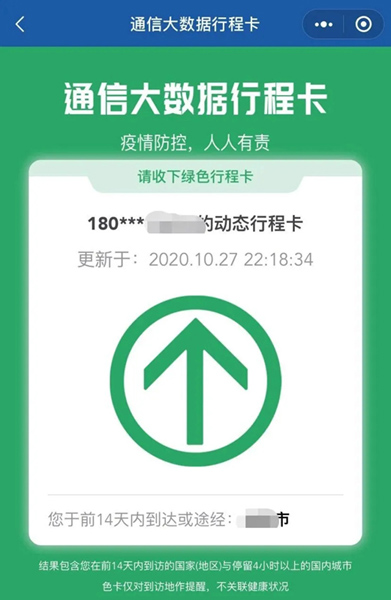 行程卡会显示你过去14天途经的国家或地区