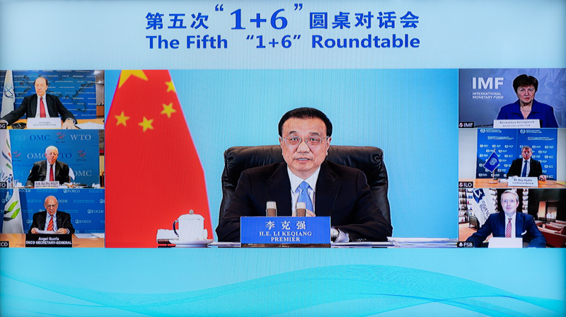 国务院总理李克强24日在京同主要国际经济机构负责人举行第五次“1+6”圆桌对话会。