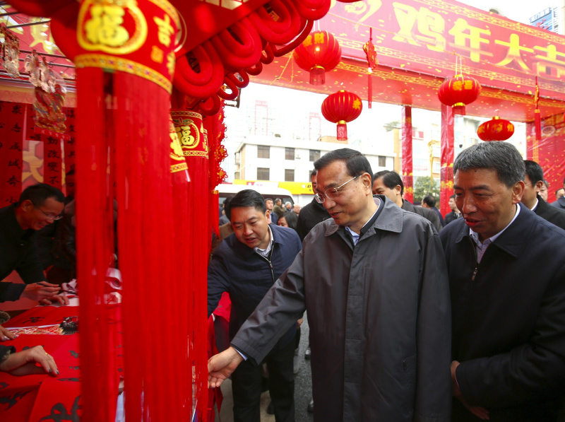 李克强23日来到云南昭通一条热闹的年货街。总理对摊主和来买年货的群众说,市场无信不立。只有诚信为本,大家才能买得安心、吃得放心,市场才能更加公平、更加红火。好日子要靠大家共同来创造,共同守护好。祝福大家过个舒心年,来年更红火!