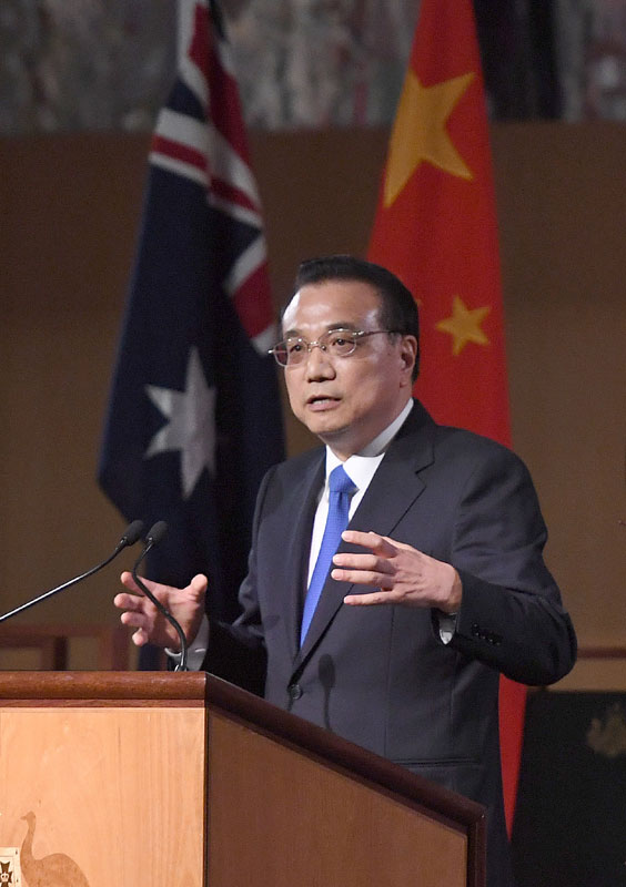 首先,我是为了自由贸易而来。当前世界上贸易保护主义抬头,逆全球化声音上升。不可否认,经济全球化给某些地区、某些国家和人民带来了一些不适应的地方,但这不是全球化本身的问题,不是自由贸易的问题,而是如何应对的问题。面对全球化这个历史潮流,要抓住机遇加快发展。比如,根据中方统计,去年中国对澳大利亚贸易逆差有几百亿美元。虽然我们不希望看到贸易不平衡,但我们认为,解决贸易不平衡问题还是要通过扩大贸易而不是关起门来。我此次访澳,要与澳方就中澳自贸协定后续落实达成新的共识,特别是在服务贸易和投资方面。我们还要扩大澳方有竞争力的产品进口,有望实现中国首次正式允许从外国进口冰鲜牛肉。