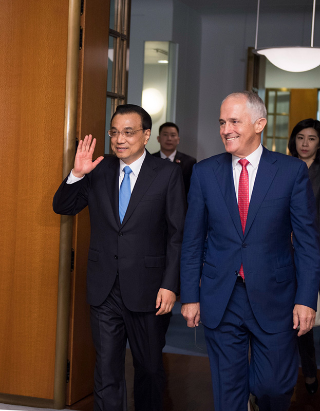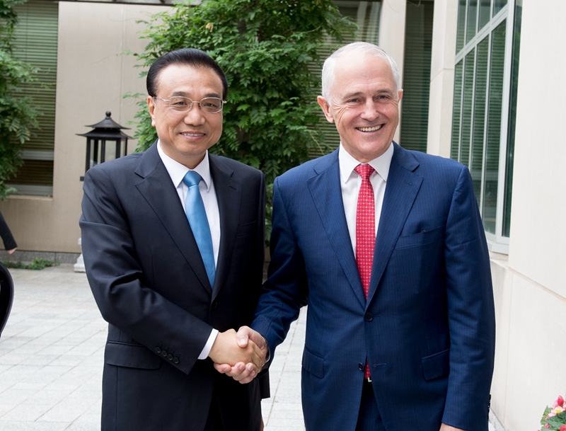 李克强同澳大利亚总理特恩布尔举行第五轮中澳总理年度会晤时强调