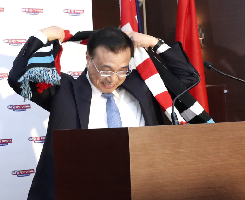李克强指出,文明因多样而多彩。欢迎你们到中国去展示澳式足球的魅力,通过加强包括体育在内的人文交流与合作,为中澳搭建更多友谊的桥梁。
