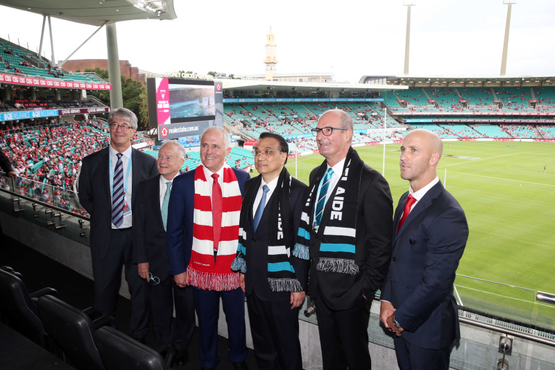 李克强与澳大利亚总理特恩布尔共同观看澳式足球时寄语