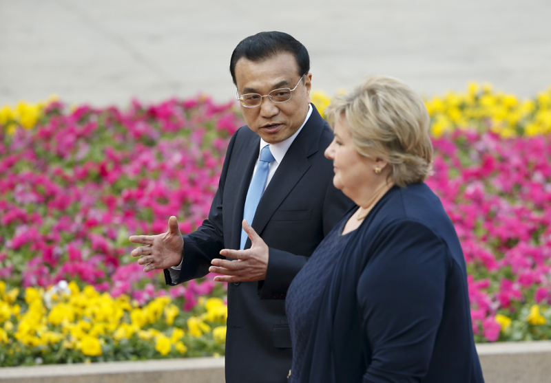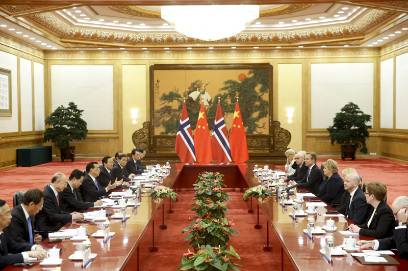 李克强表示,中挪建交63年来,挪威在发展对华关系方面曾长期走在欧洲国家前列。当前,中挪关系重回正常发展轨道,双方应倍加珍惜。希望挪方坚持一个中国原则,同中方一道本着相互尊重、平等相待的精神,尊重彼此核心利益和重大关切,加强政治互信的引领,推动中挪关系与务实合作在新的起点上再起航。