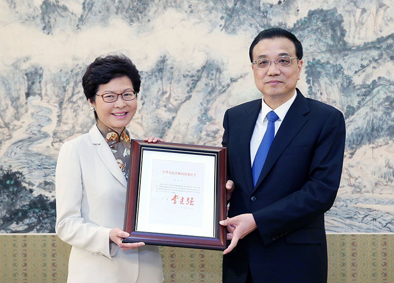 李克强颁发任命林郑月娥为香港特别行政区第五任行政长官的国务院令