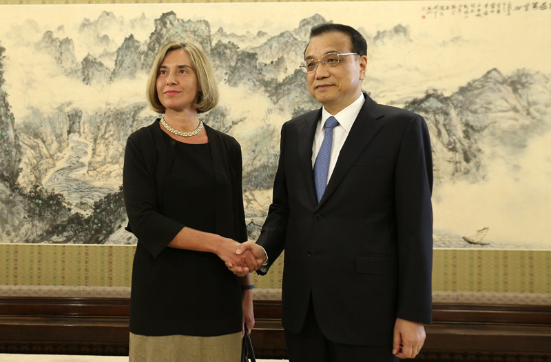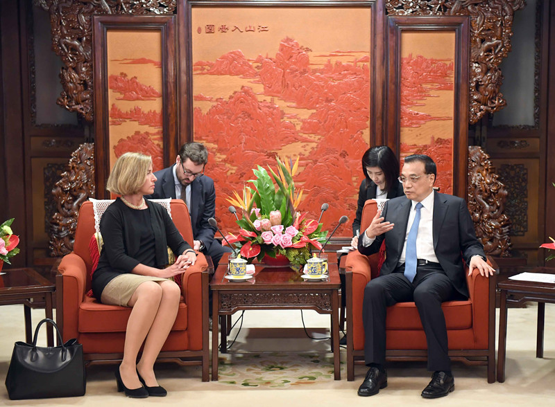 国务院总理李克强4月18日下午在中南海紫光阁会见欧盟委员会副主席、外交与安全政策高级代表莫盖里尼。
