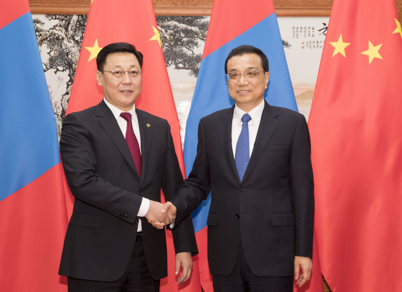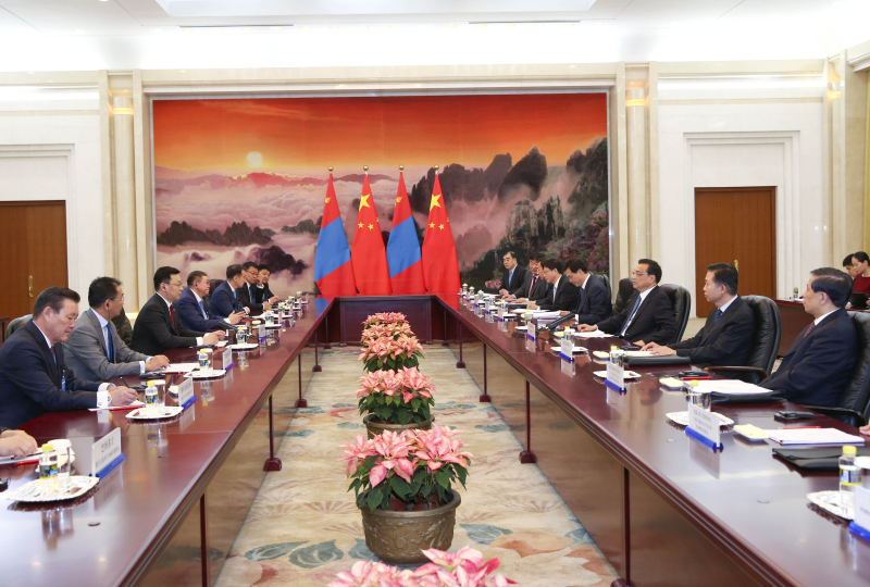 李克强表示,中蒙两国是友好邻邦和全面战略伙伴。双方要继续本着相互尊重,平等相待的原则,切实尊重彼此核心利益和重大关切,巩固中蒙关系的政治基础。我们愿加快“一带一路”倡议同蒙方“发展之路”战略对接,加大对跨境口岸建设和跨境经贸合作的投入,做好自贸可研相关合作,提升两国经贸合作水平。落实好住宅建设、农畜产品深加工、能源资源利用等领域达成的合作共识,更好实现互利共赢、共同发展。