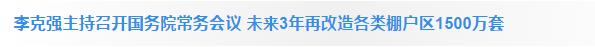国务院总理李克强5月24日主持召开国务院常务会议,会议确定:实施2018年到2020年3年棚改攻坚计划,再改造各类棚户区1500万套,加大中央财政补助和金融、用地等支持,以改革创新的举措、坚持不懈的韧劲啃下“硬骨头”,兑现改造约1亿人居住的城镇棚户区和城中村的承诺。