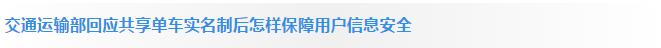 近日,交通运输部有关负责人在例行新闻发布会上表示,共享单车运营企业要履行主体责任,遵守国家网络和信息安全有关规定,将服务器设在中国境内,落实网络安全等级保护制度。另一方面,规定了相关信息的使用范围,要求运营企业采集的信息不得侵害用户合法权益和社会公共利益,不得超越提供租赁服务所必需的范围。