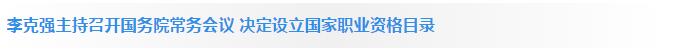 国务院总理李克强5月24日主持召开国务院常务会议,会议确定:一是公布国家职业资格目录,实行清单式管理,通过取消、合并等再减少一批职业资格,将剩余职业资格列入目录;二是设置准入类职业资格,其所涉职业(工种)必须关系公共安全、人身健康、生命财产安全等,且有法律法规或国务院决定为依据;三是依法设置的职业资格必须纳入国家目录,并实行动态调整。