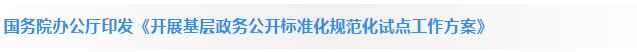 详细阅读 >> 国务院办公厅印发《开展基层政务公开标准化规范化试点工作方案》