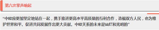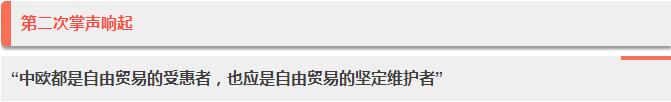 这个片段获得了观众的两次掌声,因为总理开始举起了一只手表示“赞成”,意识到“不对”后,总理又举起了双手,让掌声更加经久不息。这尤其凸显了中欧工商界人士对两国在投资领域达成共识的期待。