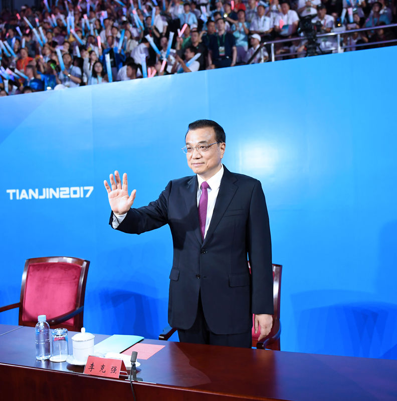 第十三届全运会组委会执行主任、天津市市长王东峰在闭幕式上致辞。他说,本届全运会的圆满成功,归功于党中央、国务院的正确领导和亲切关怀,得益于国家体育总局等部委的精心指导和各代表团及运动员、教练员、裁判员的共同努力,得益于社会各界、新闻媒体、广大志愿者和各位朋友的大力支持、真诚帮助和无私奉献。在此,代表中共天津市委、天津市人民政府表示衷心的感谢。“全运惠民、健康中国”的理念将永植每一个人的心中。
