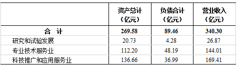 2023年末,科学研究和技术服务业企业法人单位资产总计269.58亿元,比2018年末增长26.8%;负债合计89.46亿元,比2018年末增长60.1%。