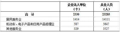 2023年末,全市共有居民服务、修理和其他服务业企业法人单位2330个,从业人员23285人(详见表5-4)。