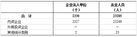 2023年末,全市共有文化、体育和娱乐业法人单位2331个,比2018年末增长3.7%;从业人员24778人,比2018年末下降4.1%。其中,企业法人单位2221个,比2018年末增长7.8%;从业人员23188人,比2018年末下降1.0%。