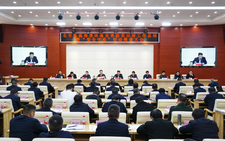 3月19日上午,我市召开低温雨雪冰冻灾害防范应对工作总结暨“安全守底”行动推进大会,贯彻落实习近平总书记关于安全生产重要指示批示精神,以及近期党中央、国务院和省委、省政府关于安全生产工作会议精神,总结全市低温雨雪冰冻灾害防范应对工作,分析研判当前安全生产形势,深入部署全市“安全守底”行动,确保全市大局持稳向好。市委副书记、市长李挚出席并讲话,市领导汪涛、李建华、李美云、陈阁辉、魏淑萍、张世愚、秦山成、郭占扬,市政府秘书长孙志诚参加。