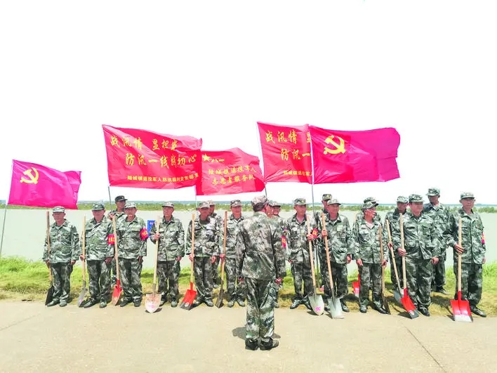 退役军人在防汛一线