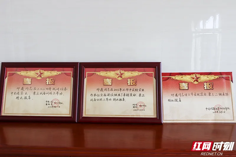 喜报虽小,承载的却是沉甸甸的荣誉与责任。作为家乡投身强军实践的杰出代表,邓遴在部队表现优异,牵头创新多套战术战法,多次带队执行重大演训演习任务,为部队建设发展做出了突出贡献。个人先后荣立二等功1次,三等功4次。这些荣誉的背后,既饱含着他个人的辛勤付出,也凝结着军属的默默奉献与支持。