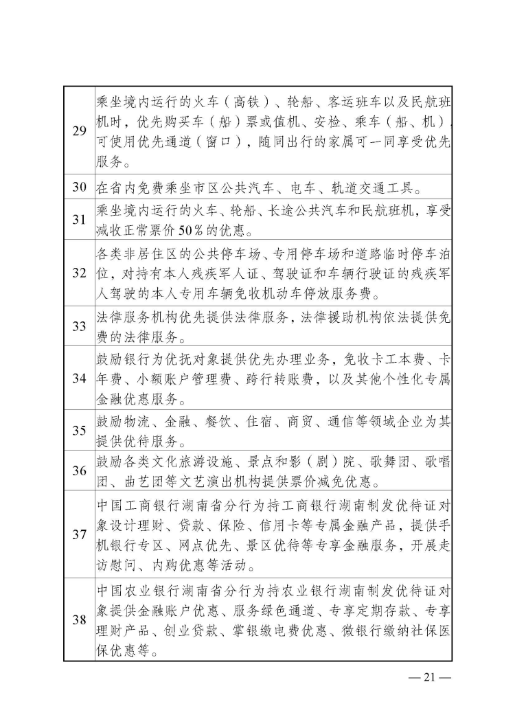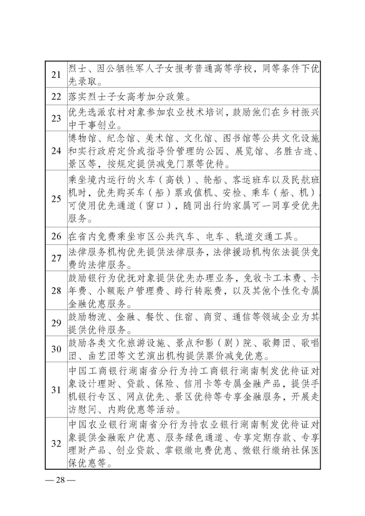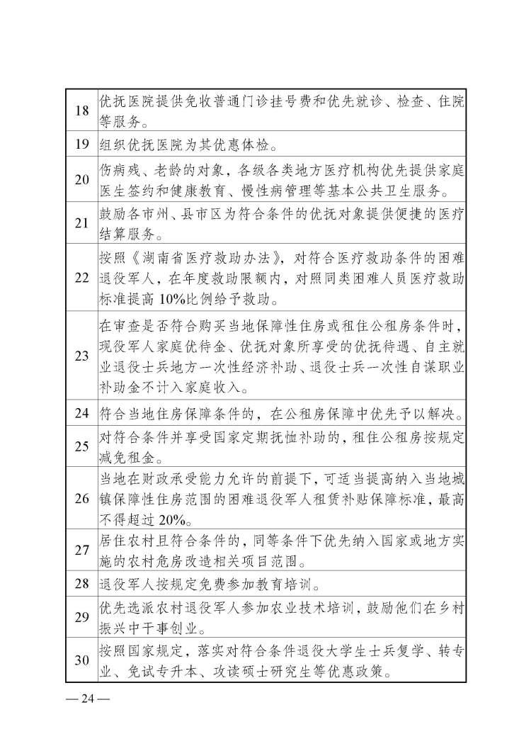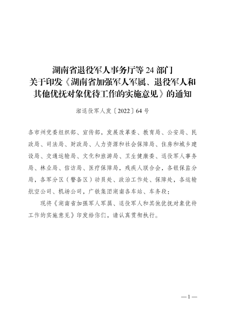 湖南省退役军人事务厅等24部门关于印发《湖南省加强军人军属、退役军人和其他优抚对象优待工作的实施意见》的通知