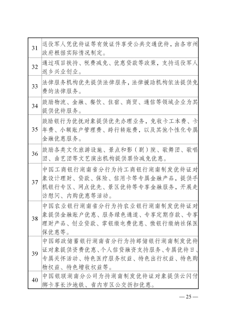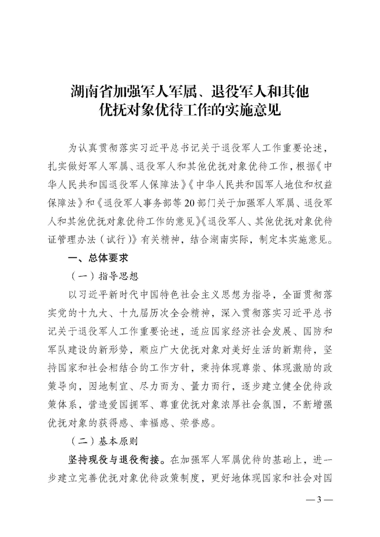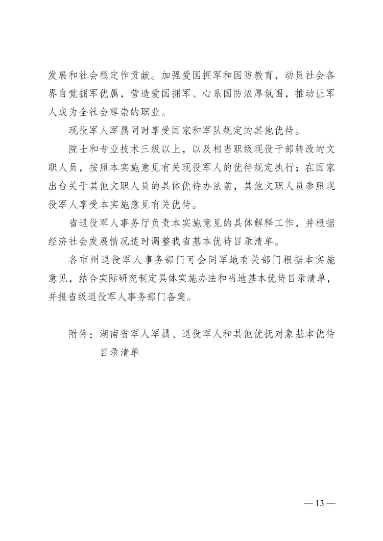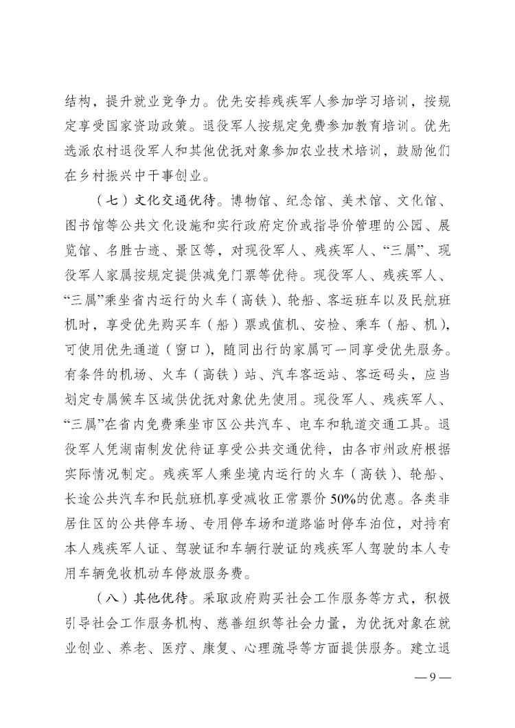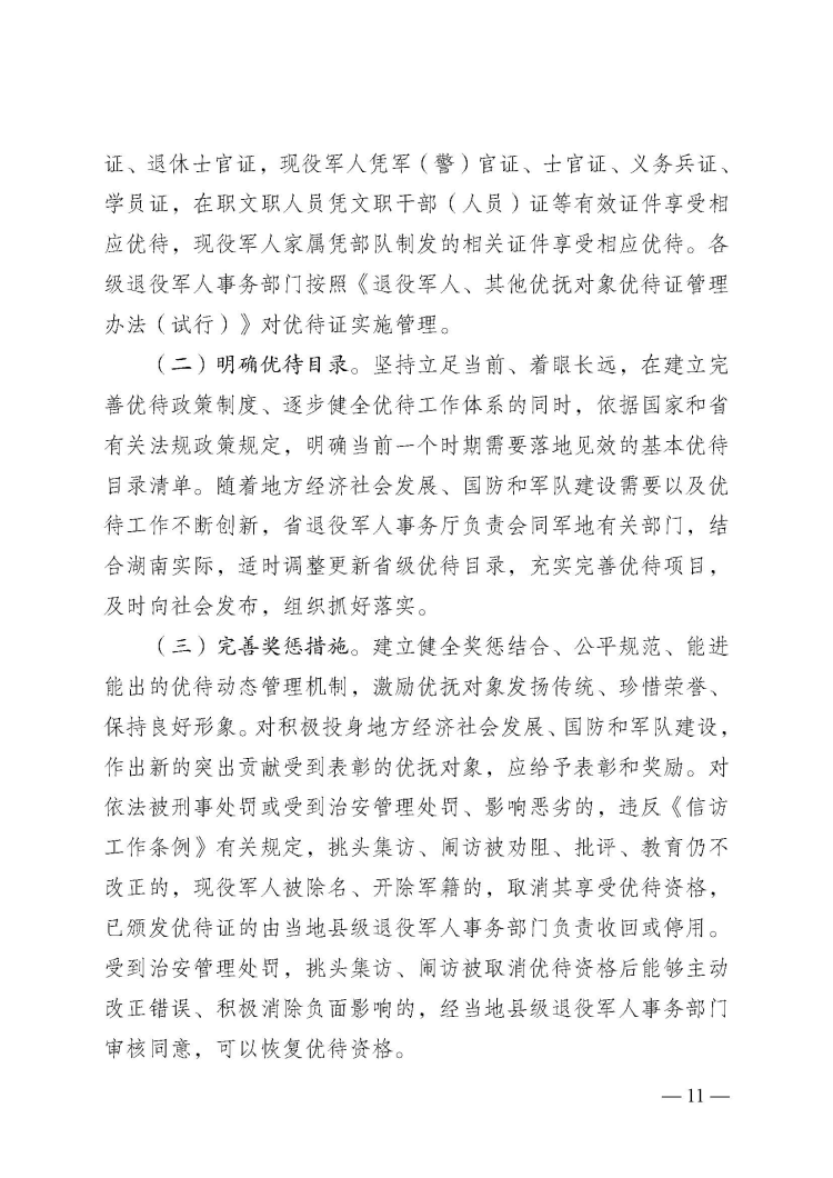 湖南省退役军人事务厅等24部门关于印发《湖南省加强军人军属、退役军人和其他优抚对象优待工作的实施意见》的通知