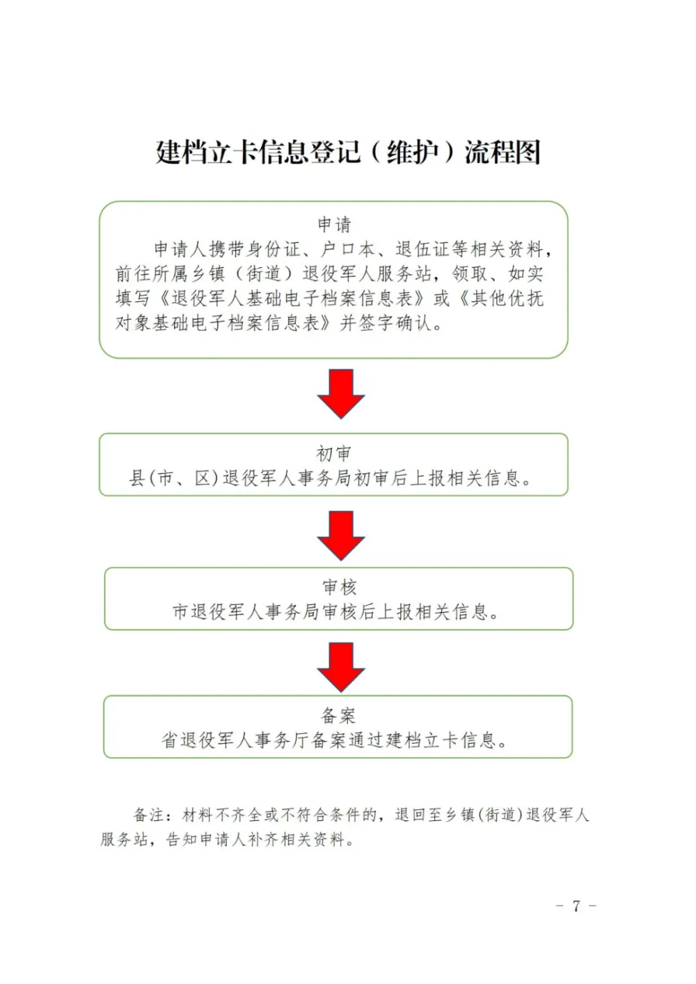 (一)申请人在申请优待证前应先建档立卡。如申请人未建档立卡或建档立卡基础档案信息不完善,应携带相关资料前往户籍地或常住地镇(街道)退役军人服务站建档立卡或完善信息后,再提出申请。