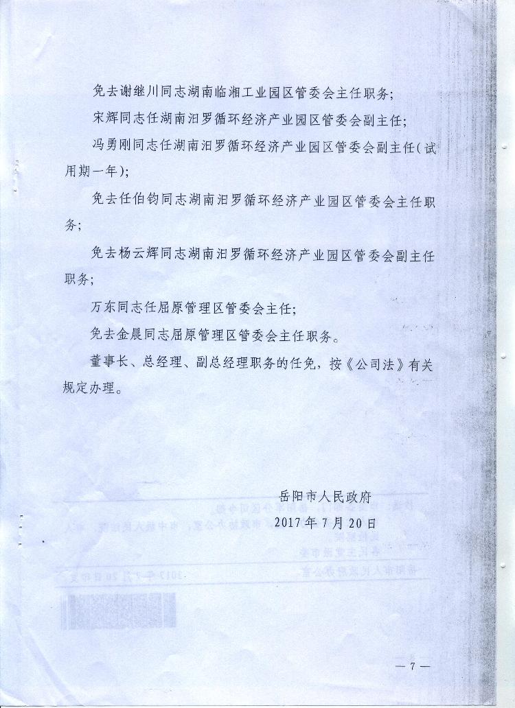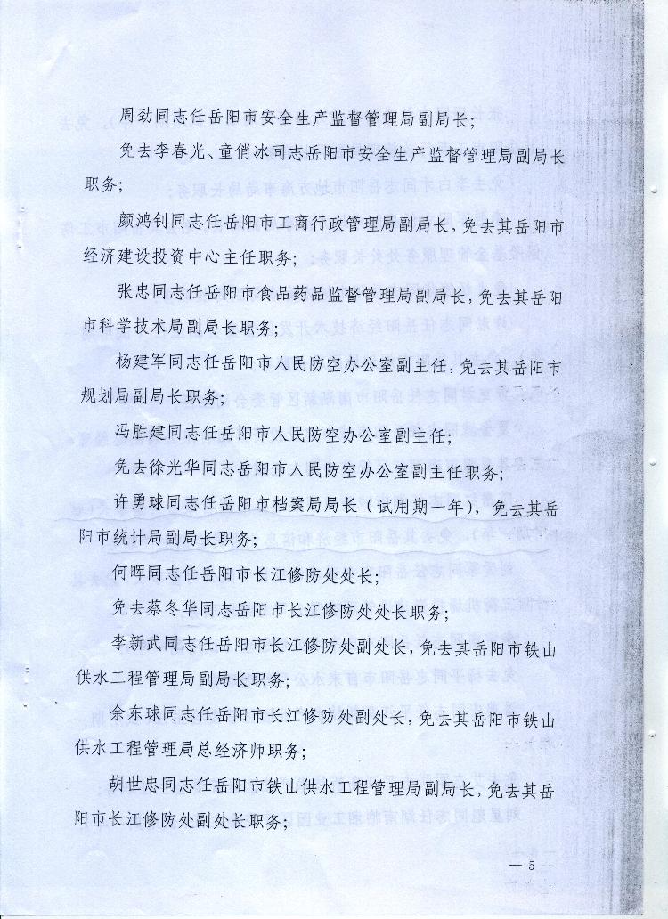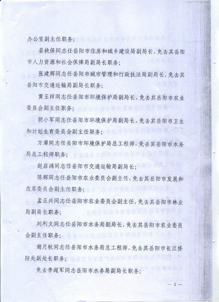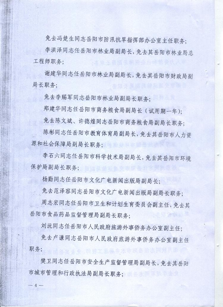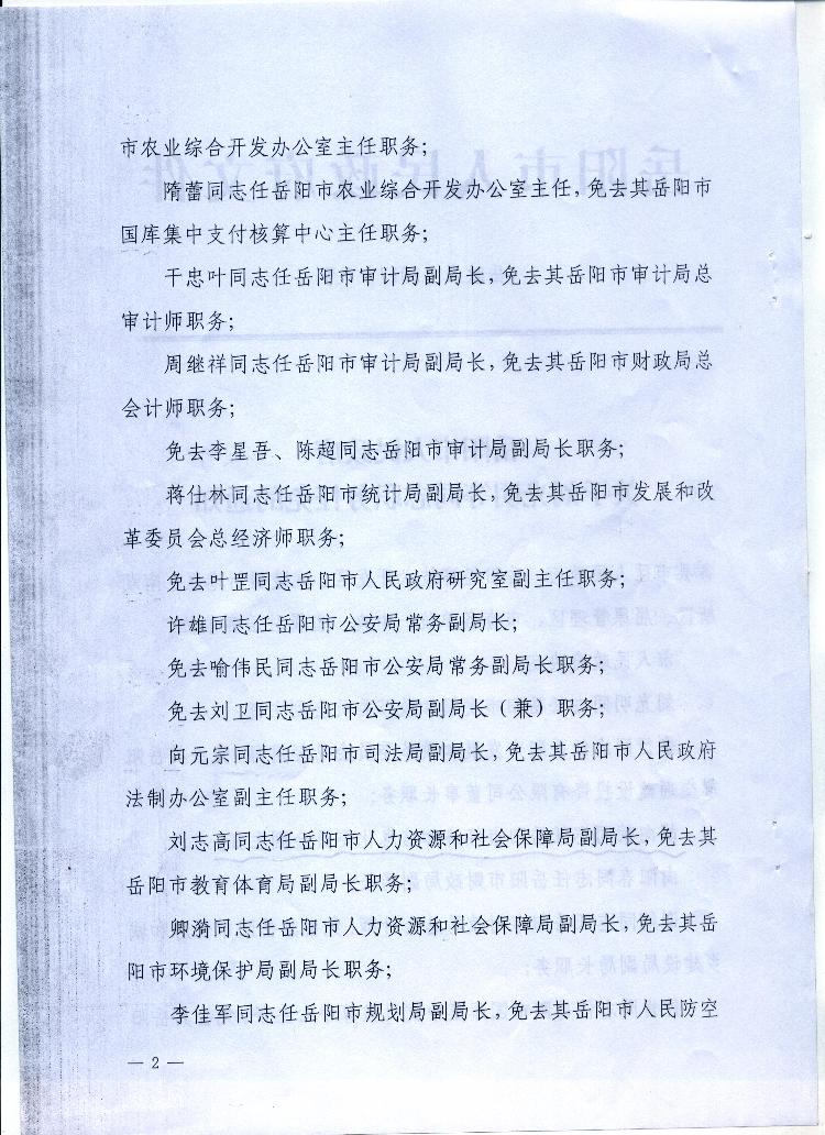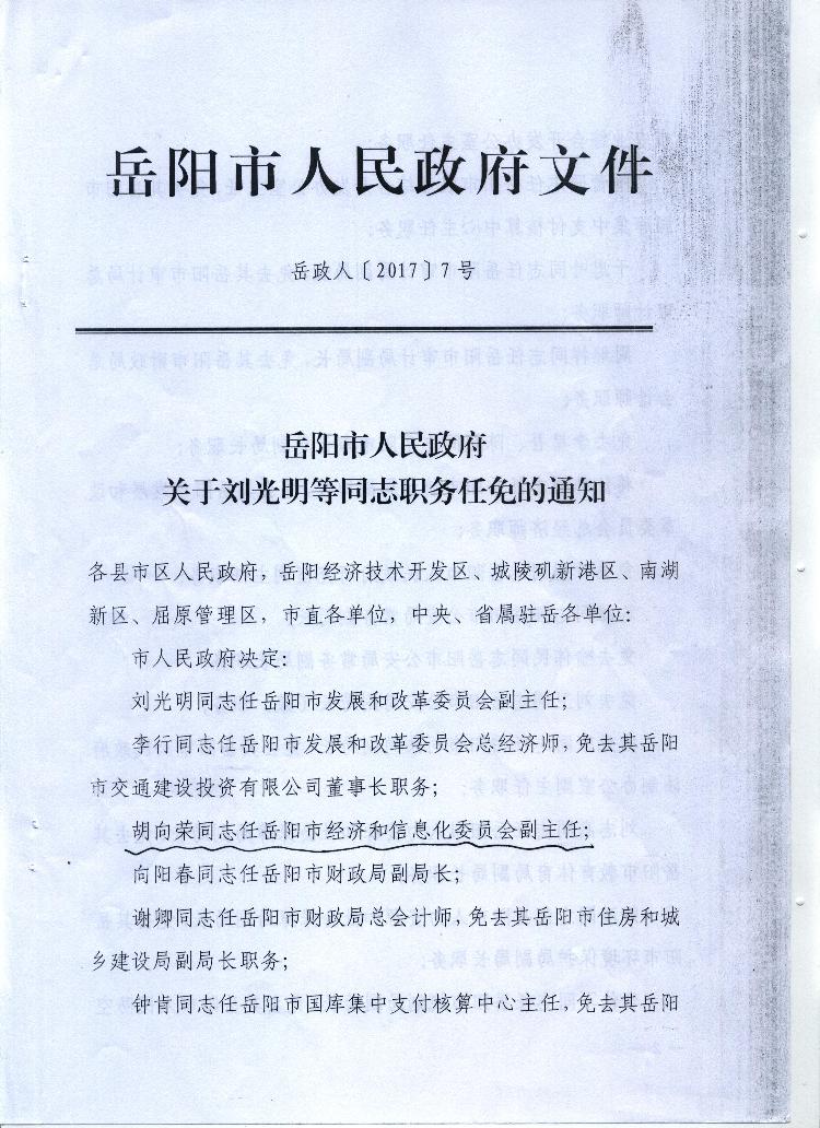 岳阳市人民政府关于刘光明等同志职务任免的通知