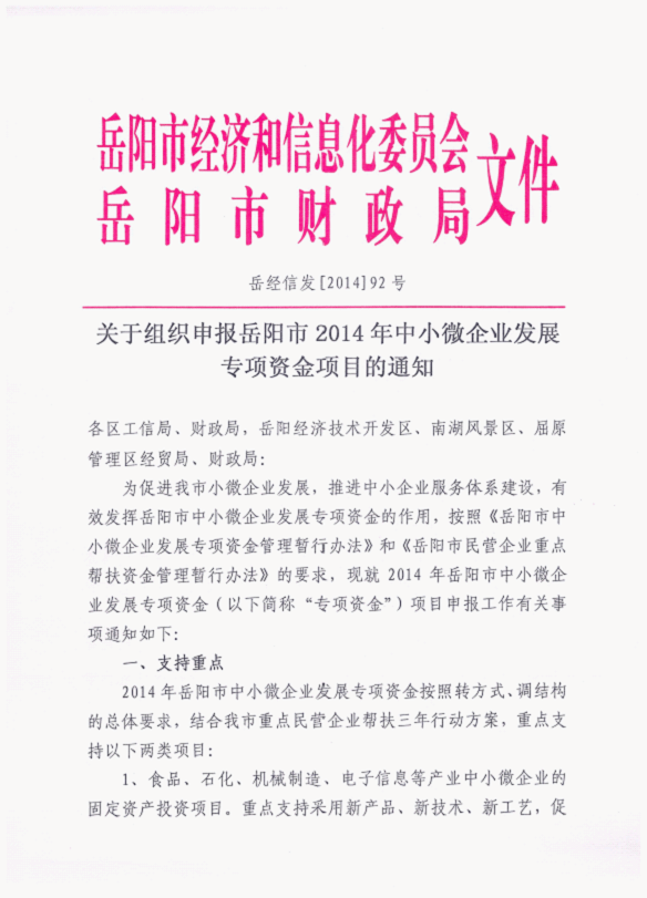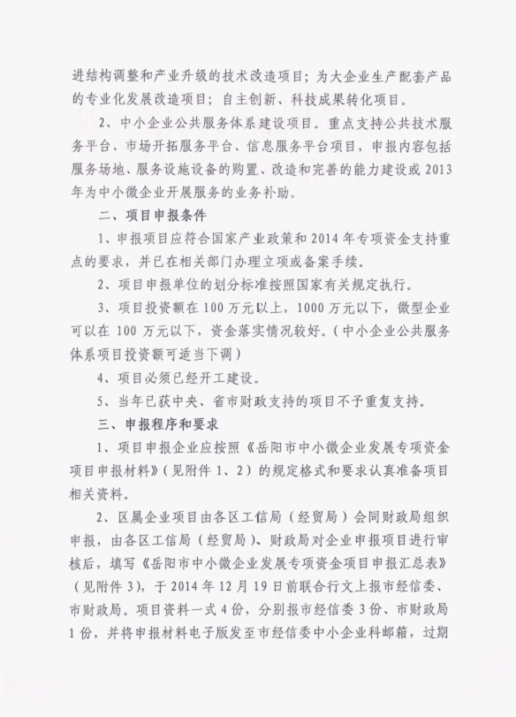 关于组织申报2014年市本级中小微企业发展专项资金的通知