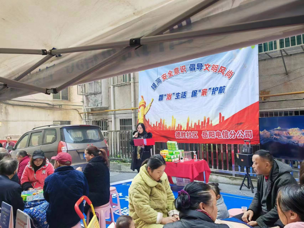 2025年1月15日,市工信局联合岳阳电信公司、岳阳移动公司来到岳阳楼区德胜社区开展“智治生活,保家护航---防范电信网络诈骗宣传”活动。