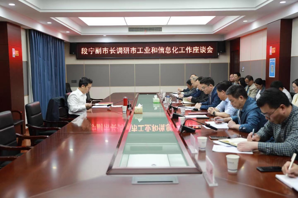 4月7日下午,市政府副市长、党组成员段宁赴市工业和信息化局开展调研并召开座谈会。市工信局党组书记、局长曹冠军,局党组领导班子成员、副处级领导、调研员,以及机关各科室、直属单位主要负责同志参会。