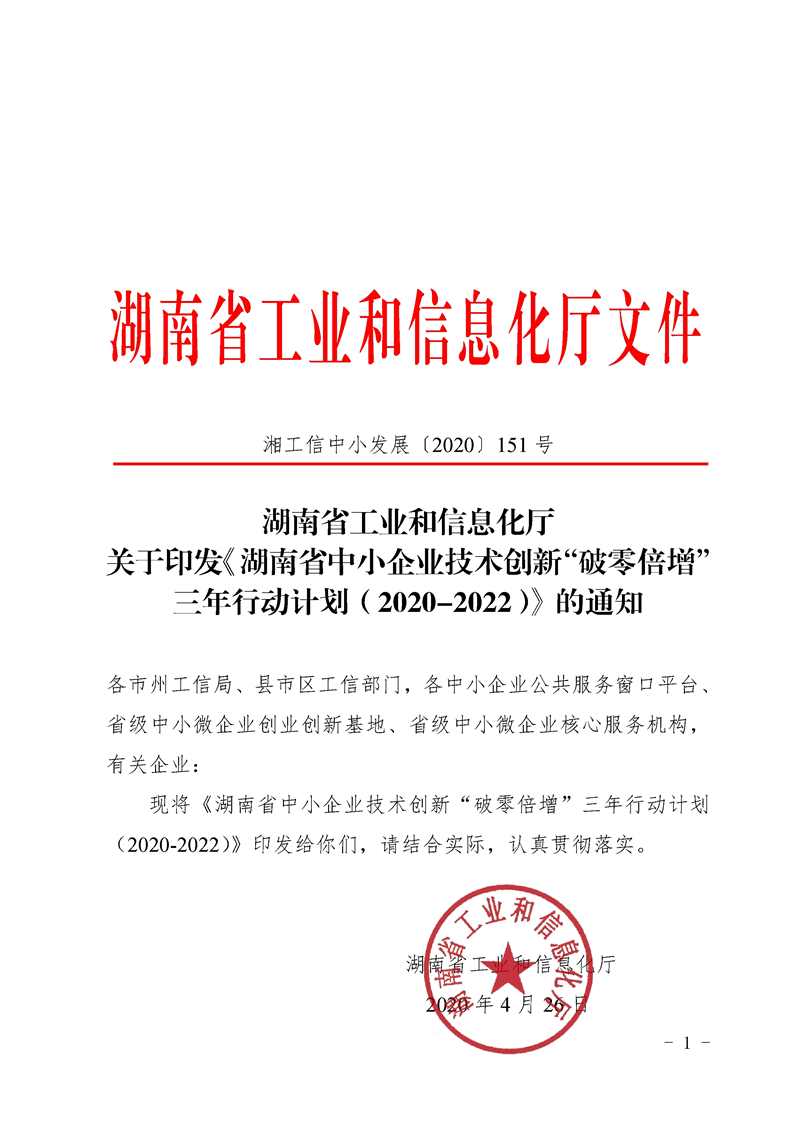 转发省工信厅《关于印发〈湖南省中小企业技术创新“破零倍增”〉的通知》