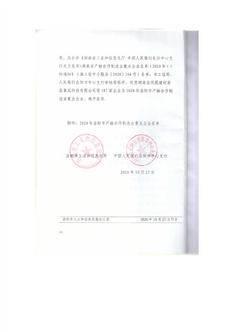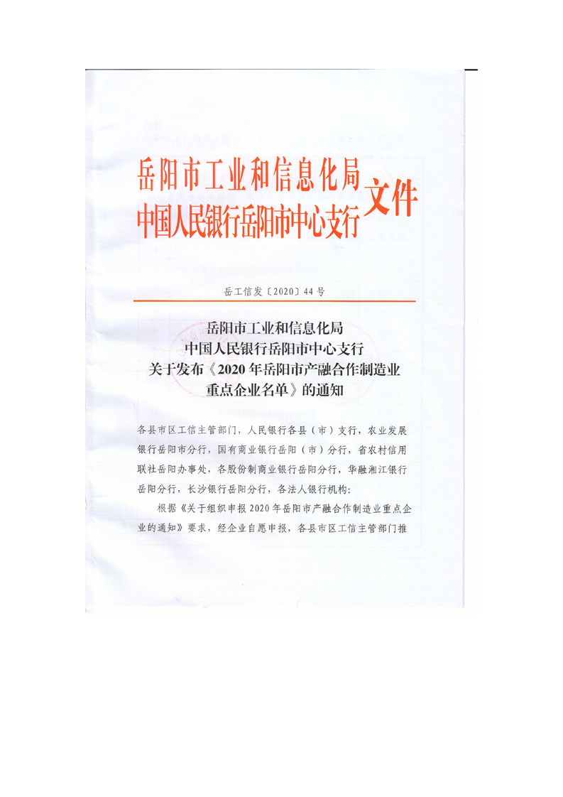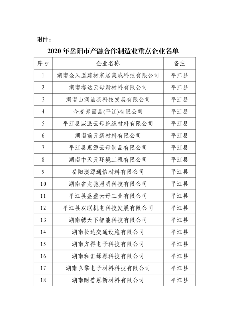 关于发布《2020年岳阳市产融合作制造业重点企业名单》的通知