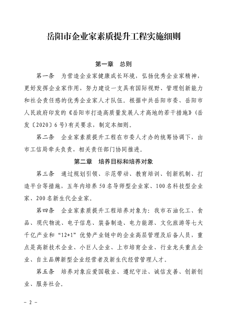 关于印发《岳阳市企业家素质提升工程实施细则》的通知