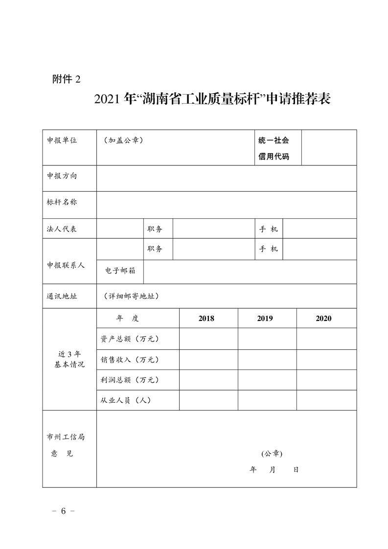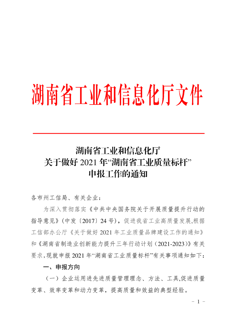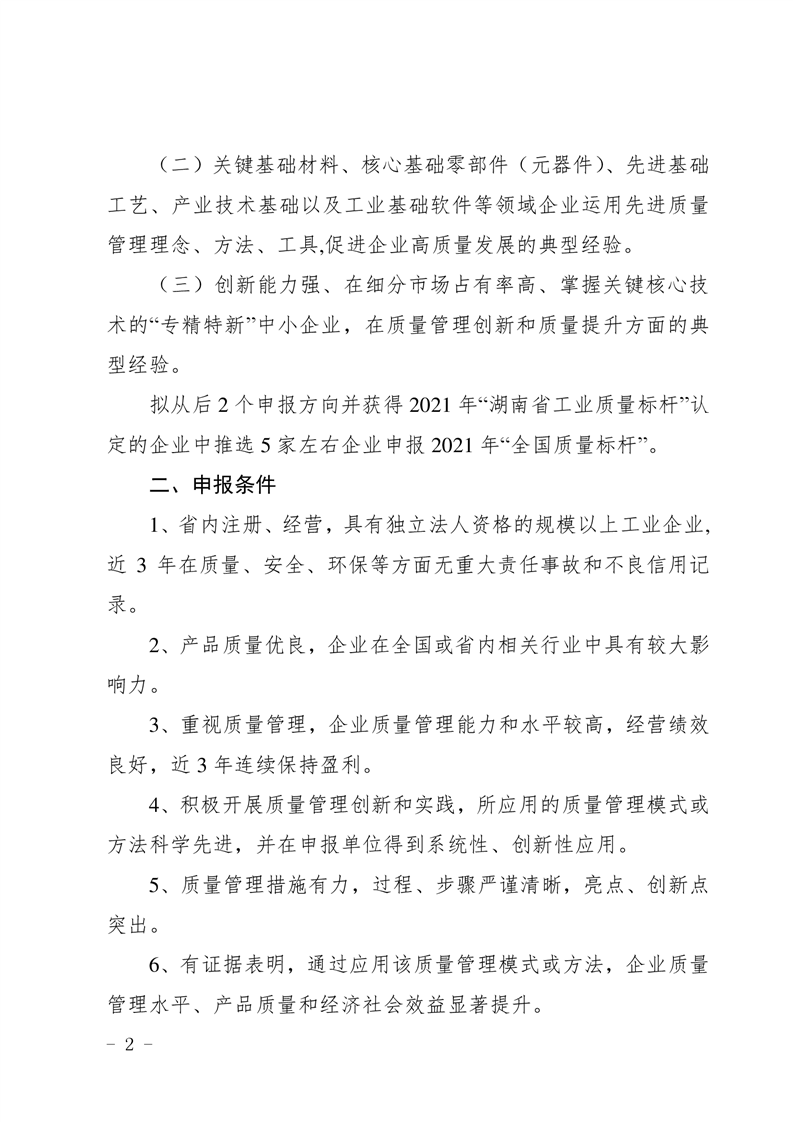 关于做好2021年“湖南省工业质量标杆”申报工作的通知