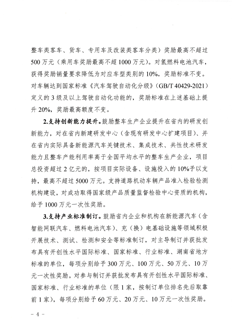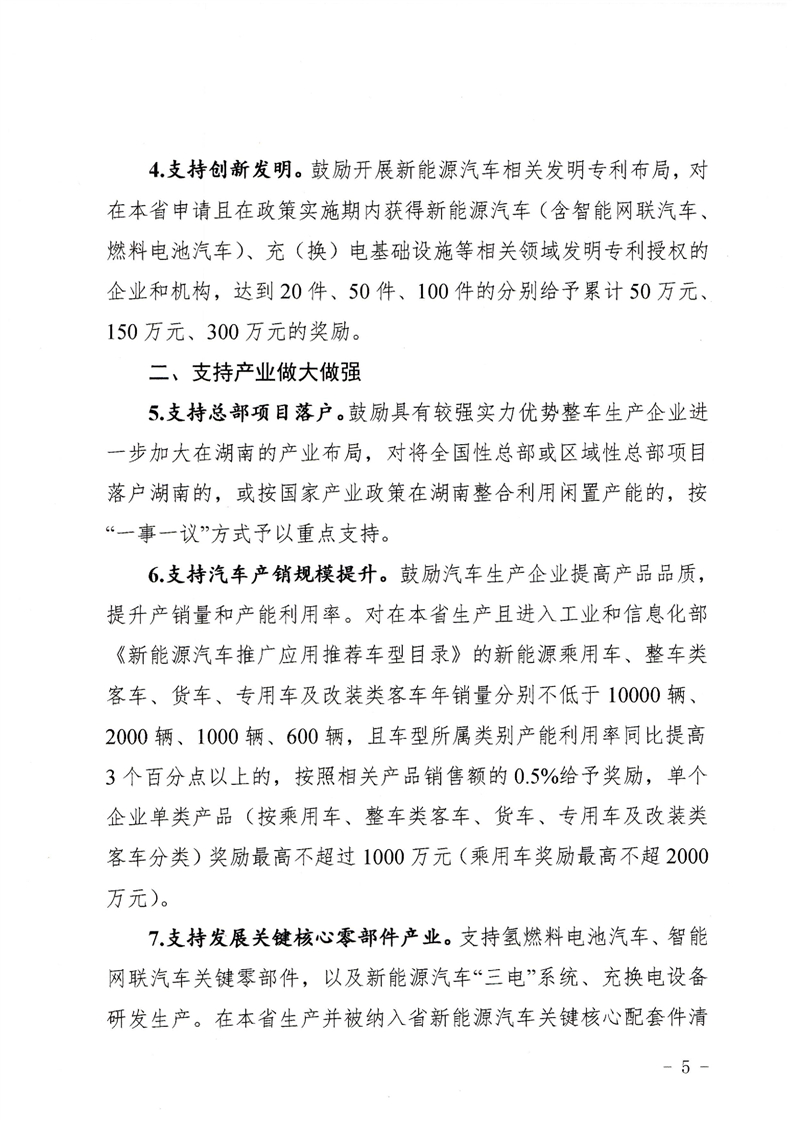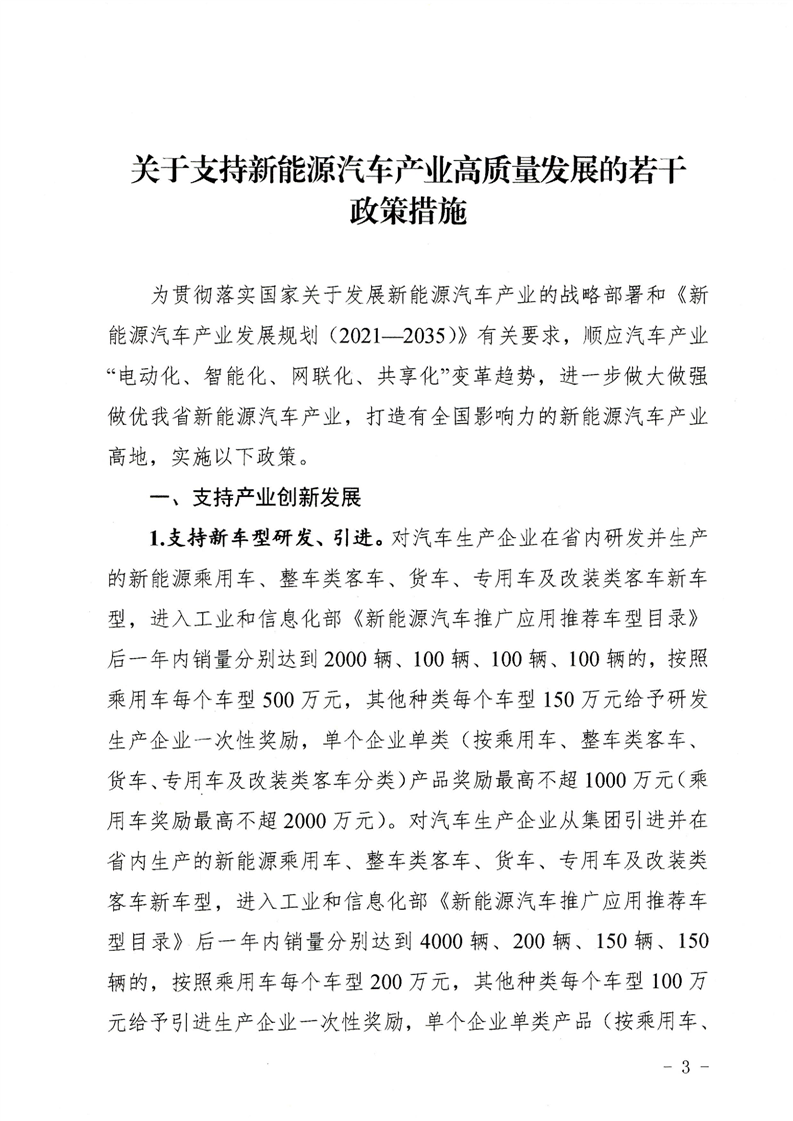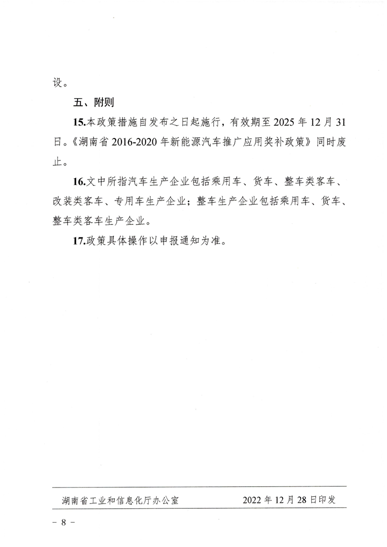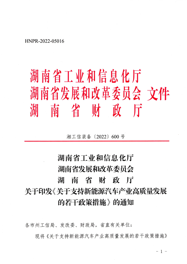 关于印发《关于支持新能源汽车产业高质量发展的若干政策措施》的通知(湘工信装备〔2022〕600号)