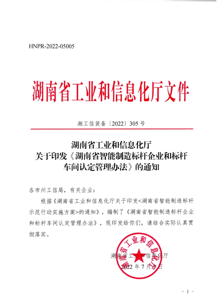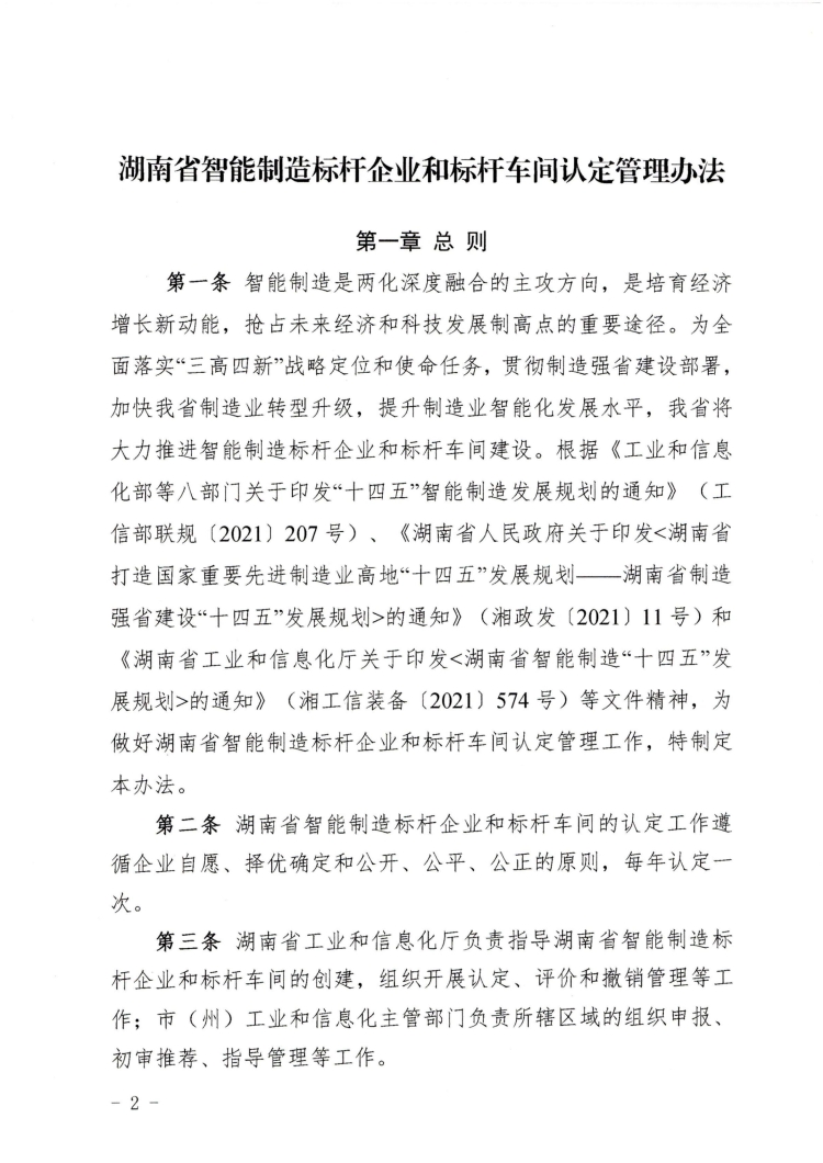 关于印发《湖南省智能制造标杆企业和标杆车间认定管理办法》的通知(湘工信装备〔2022〕305号)
